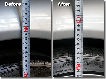 リヤは、装着前が693mm、装着後が674mmで、ダウン量は▲19mm。