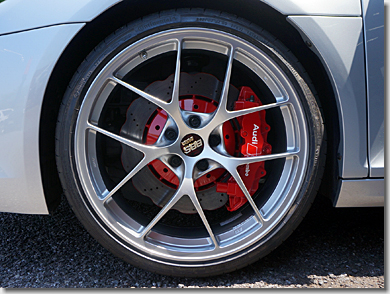 ブレーキキャリパーやローターハブは、Audi純正ホイール(10スポークYデザイン)では開口部が少なく、目立たない存在となってしまいますが、“スカスカ”のRI-Dにしたことで、ホイール内部まで光が入り、メチャメチャ目立つようになりました。